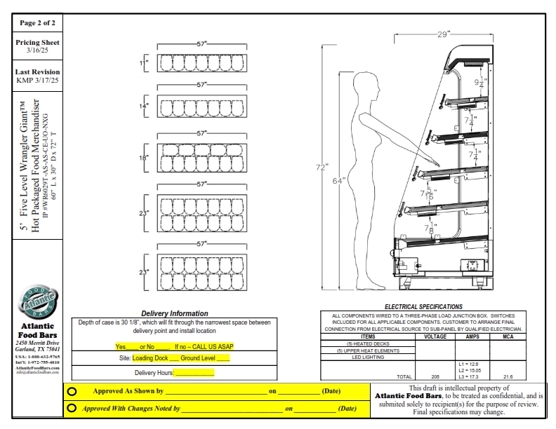 Increase your offering, create more impulse sales, and grow your hot food program in a shallow footprint with the Atlantic Food Bars WRT Series! Based upon hourly and daily traffic patterns, you can utilize infinite temperature control for each individual hot deck, controlling shrink, while maximizing merchandising impact. This multi-level case is great for end-caps and in-line locations, and is ideal for packaged foods – chicken, sandwiches, pizza, and more – turn off the heat on any given level during slow periods to merchandise dry goods. If you are selling hot food full service, you won’t believe the profitability of this self service unit due to reduced labor costs, convenience for shoppers, higher sales and lower shrink.
