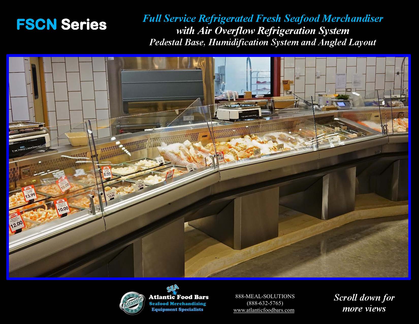 Angled Refrigerated Seafood Case Lineup – Full-Service with Pedestal Base and Humidification System – FSCN-P-HS-W
