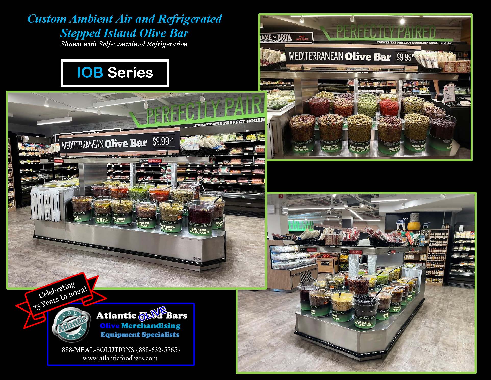 Create a merchandising profit center that distinguishes your foodservice operations and keeps your customers coming back for more with Atlantic Olive Bars! Available in countless standard and custom configurations to capture those impulse sales and display olives, salad and much more. For over 75 years, we have worked with our customers to build all types of imaginative shapes and features to get the most out of a singular footprint.