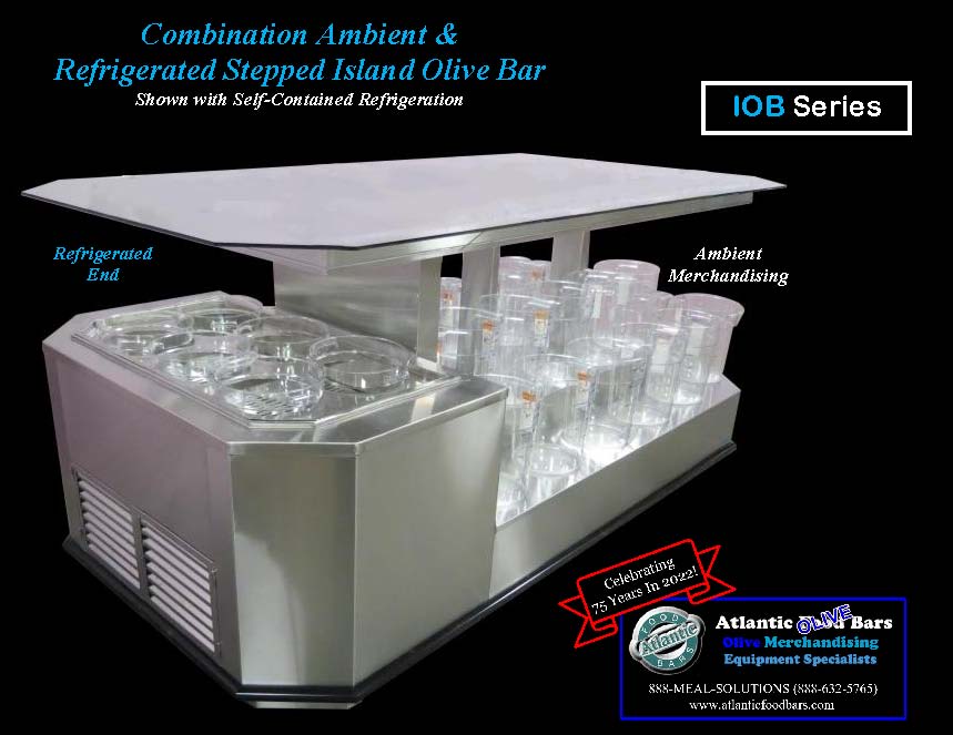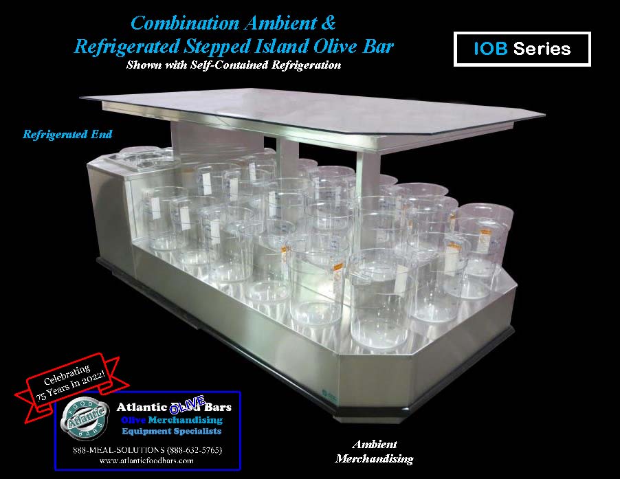 Custom 10′ Ambient Air and Refrigerated Stepped Island Olive Bar – IOB