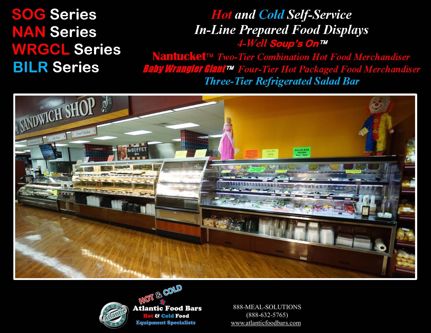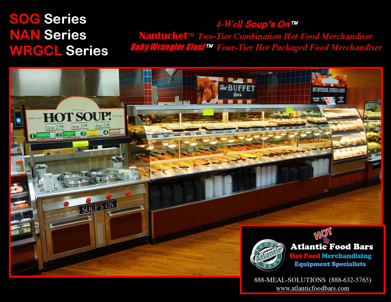 Hot and Cold Prepared Foods Self-Service Deli Lineup featuring Soup Bar, Two-Tier Combination Hot Food Merchandiser, Four-Tier Hot Grab & Go Chicken Case, and Three-Tier Refrigerated Salad Bar – WRGCL4837 SOG4836 NAN14436 BILR11734