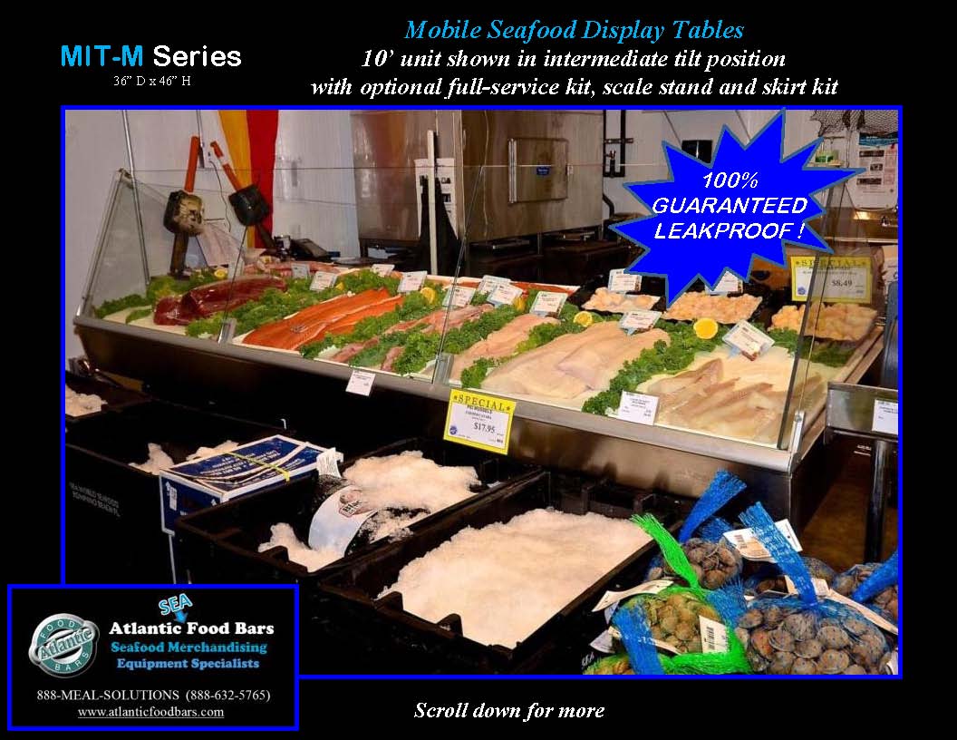 NEW PRODUCT – MIT-M Modular Mobile Ice Tables for 100% Guaranteed Leak-Proof Seafood Display – Effortlessly Transform from Full-Service to Self-Service !
