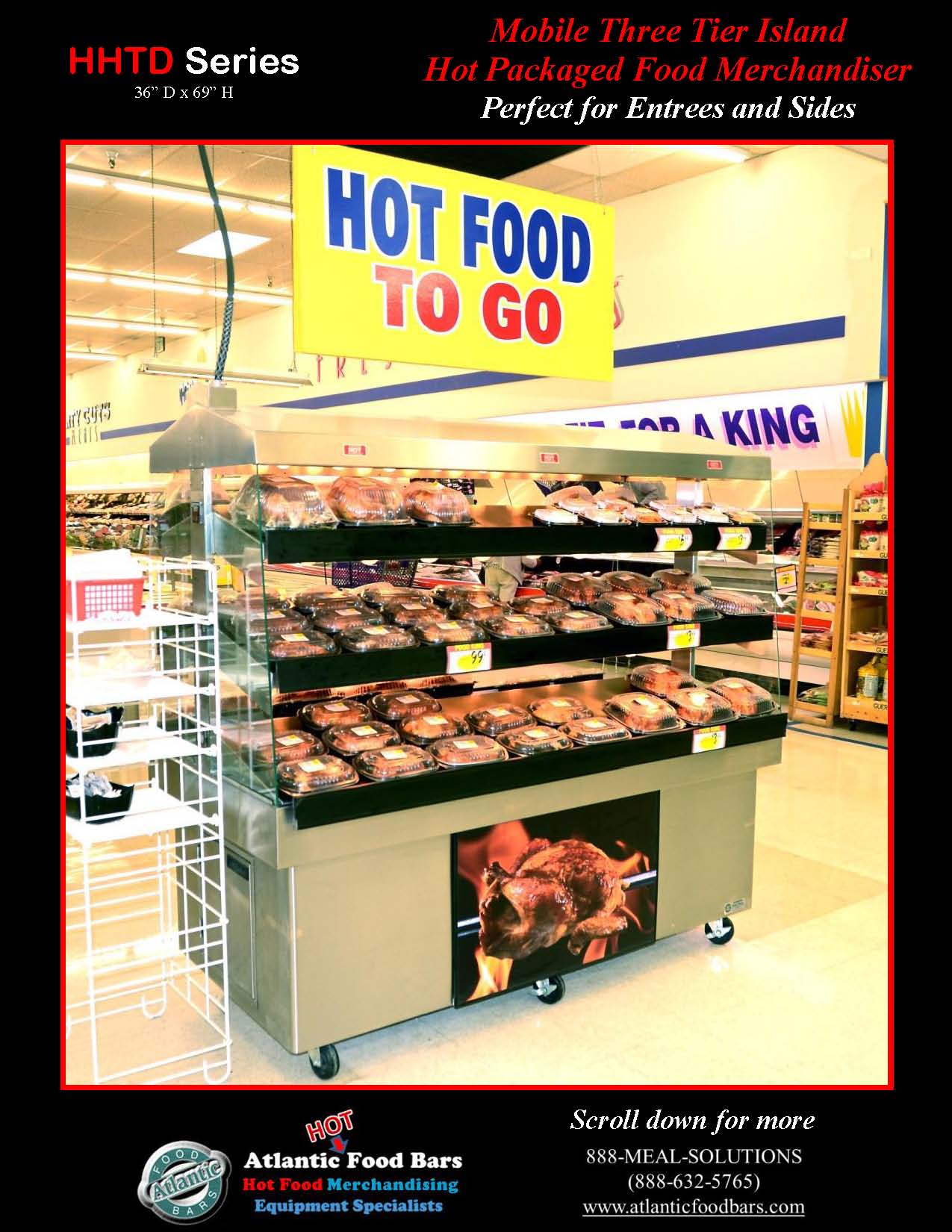Atlantic Food Bars - Mobile 3-tier Island Hot Packaged Food Merchandiser - HHTD7236 1 Atlantic Food Bars - Mobile 3-tier Island Hot Packaged Food Merchandiser - HHTD7236 2Mobile 3-Level Hot Chicken Island – Increase Impulse Sales with Hot Food to Go ! – HHTD7236