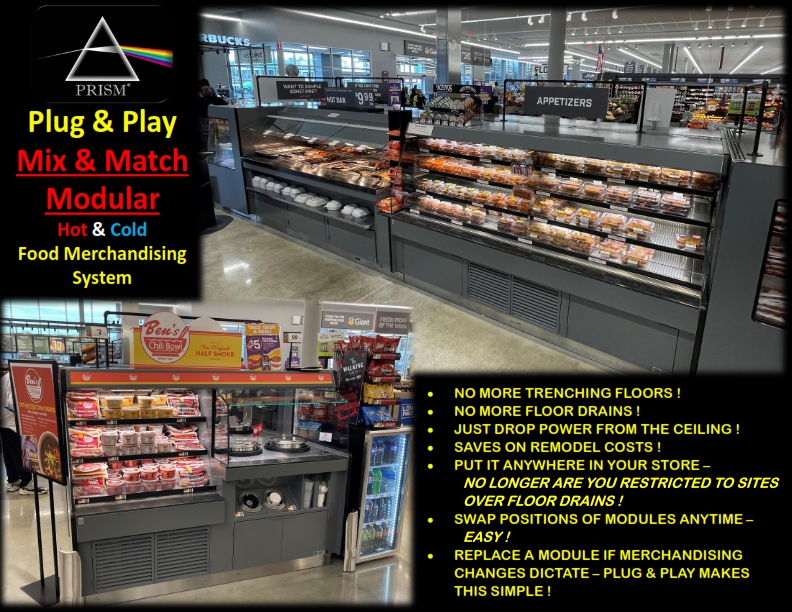 Modular Hot and Cold Food Merchandising System – Configured with Soup, Packaged and Bulk Self Service Hot Food Bars – Mix & Match with our Prism Series – MDRSWPR MDRPR HFBPR