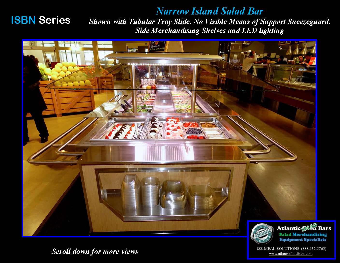 Narrow Island Salad Bar – Shown with No Visible Means of Support Sneezeguard, Tubular Tray Slide and LED Lighting – ISBN-SPRN2-TS-VH