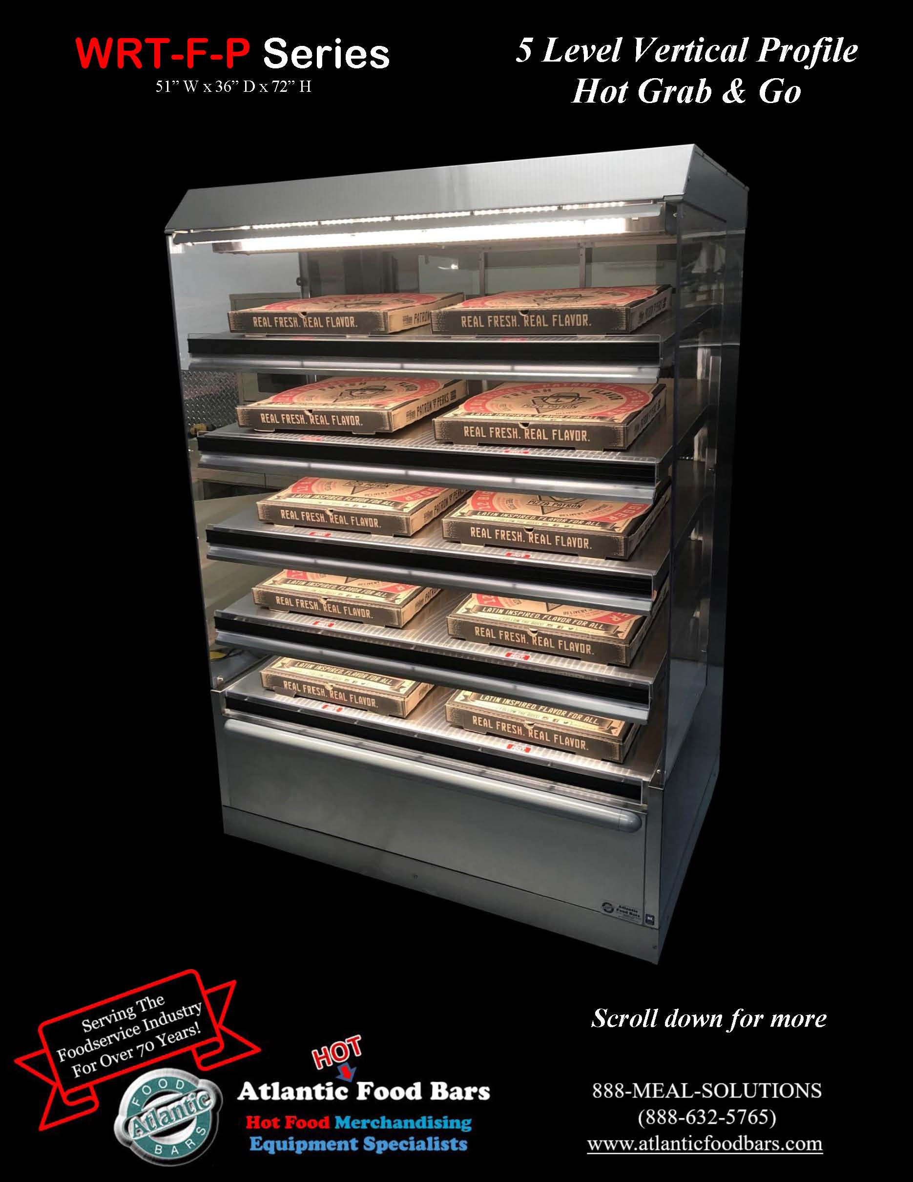 Atlantic Food Bars Pizza Wrangler – 5-Level Vertical Profile Hot Grab & Go Pizza – WRT-F-P Series
