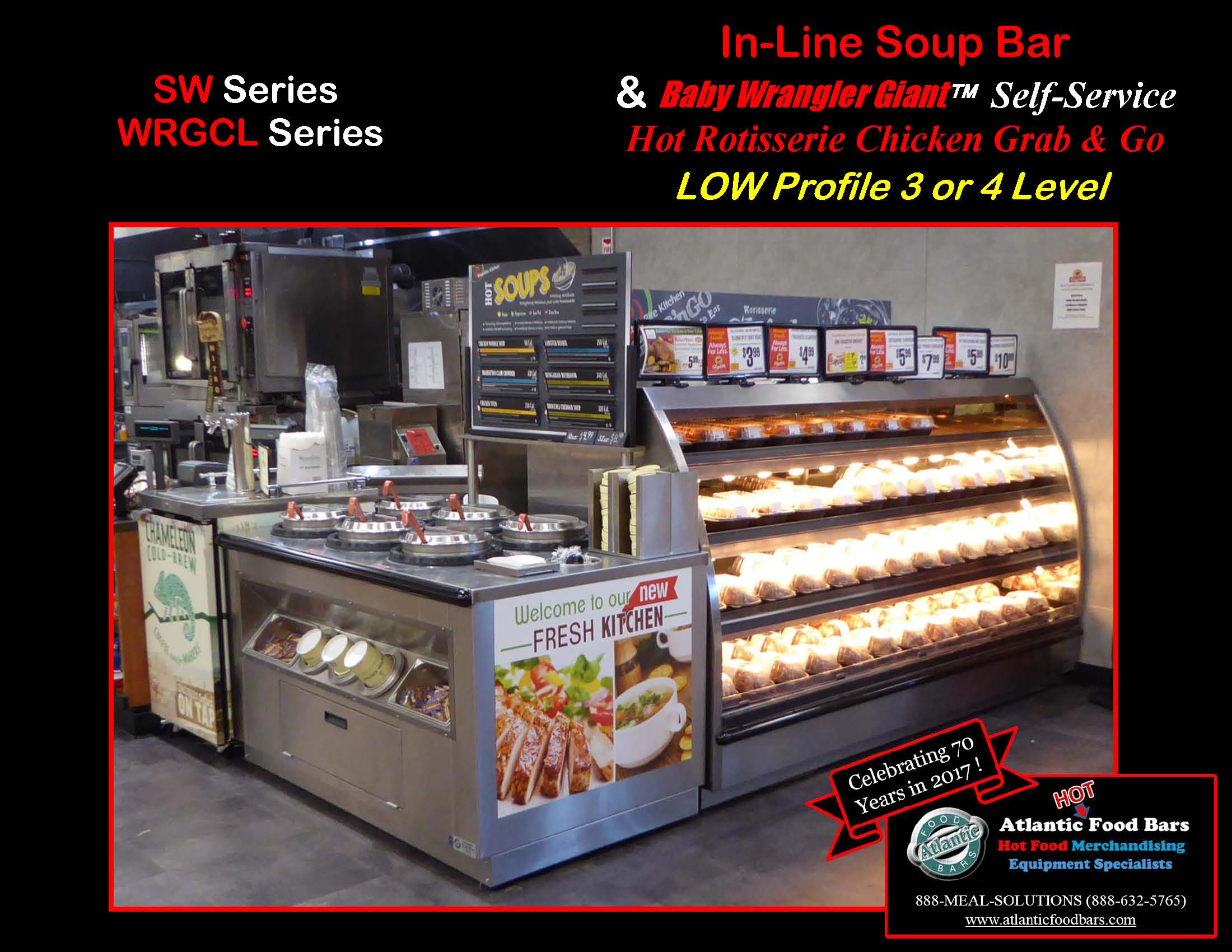 Self-Service Meal Station – In-Line Soup Bar and Baby Wrangler Giant Hot Grab & Go Rotisserie Chicken Merchandiser – Sell At The Perfect Product-Specific Temperature And Control Shrink With Independent Heat Controls – SW WRGCL
