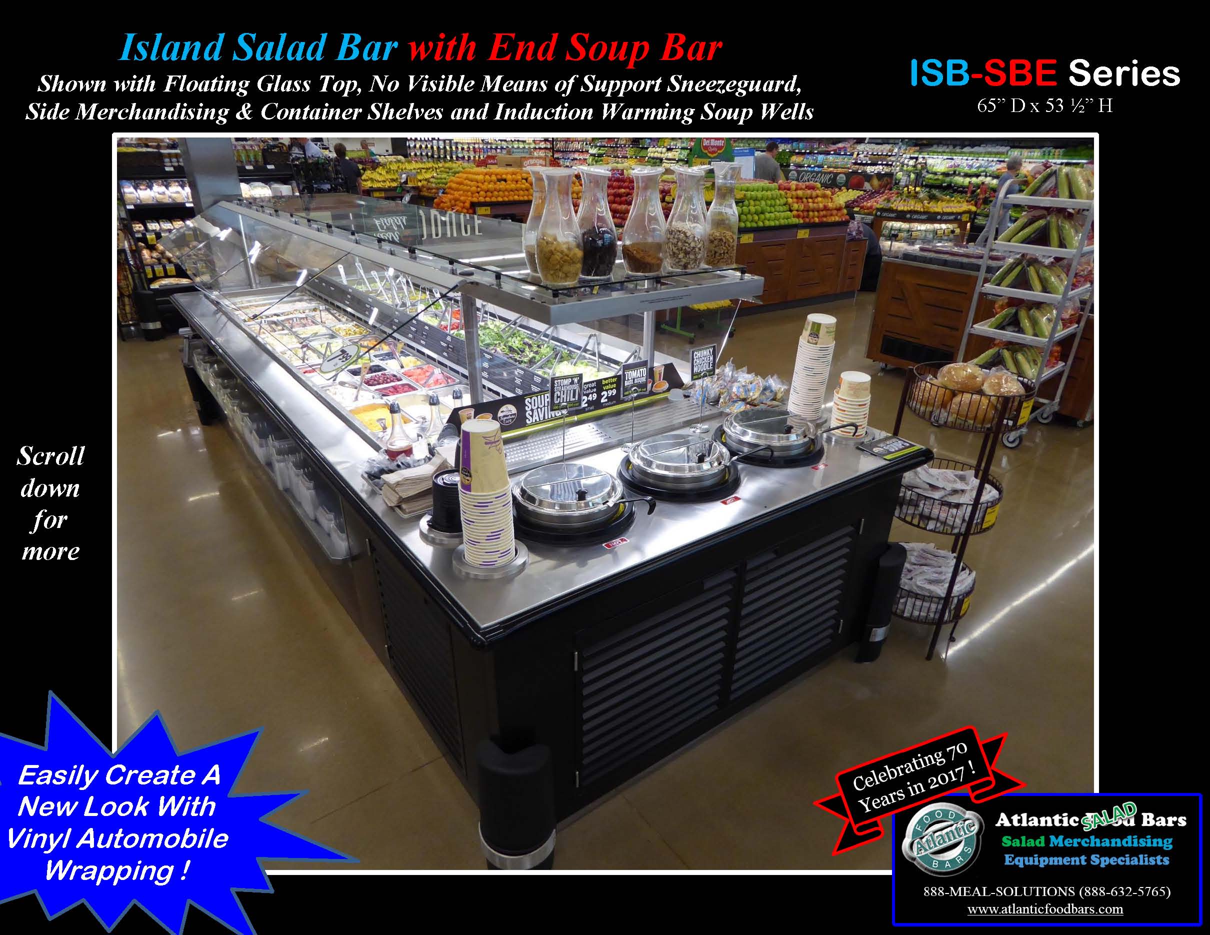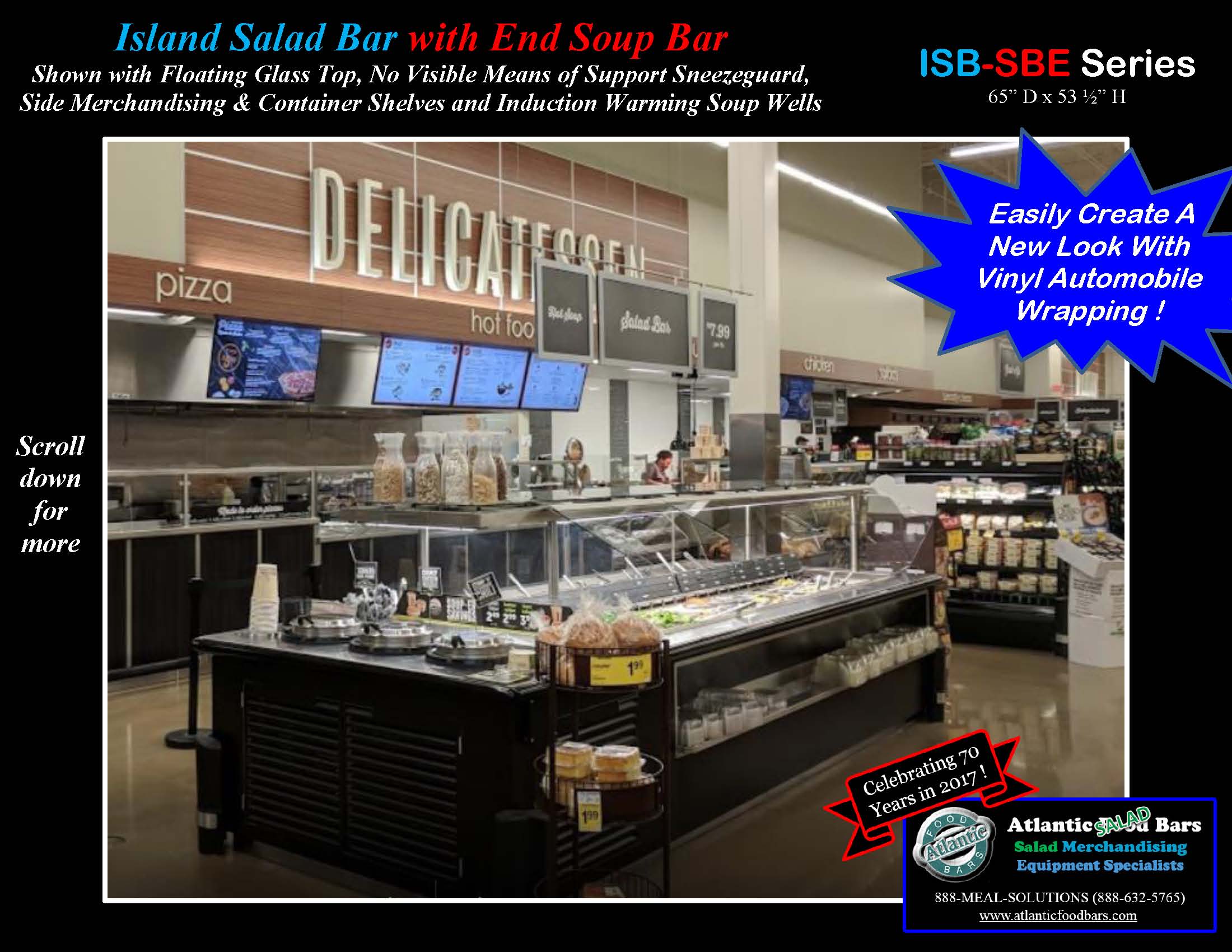 Vinyl Automobile Wrapping on Island Salad and Soup Bar – Easily Create A New Look At Any Time! Featuring NSF7 Air Overflow Refrigeration System, Salad Dressing Template, Induction Warming Soup Wells, Floating Glass Top & No Visible Means of Support Sneezeguard – ISB-SBE Series
